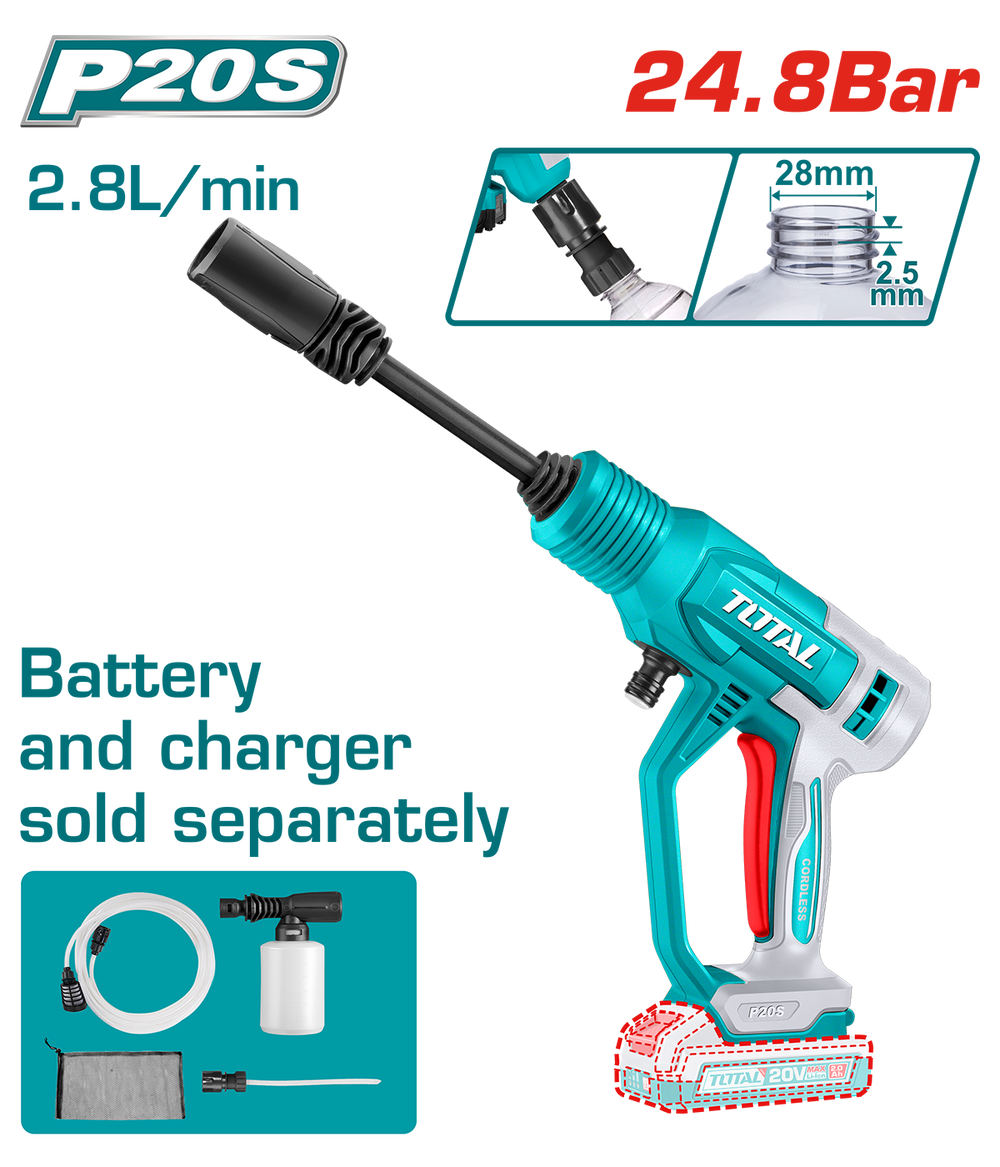 Aparat de spalat cu presiune TOTAL 20V – Portabil, 24.8 Bar, Autoabsorbtie, Li-Ion
