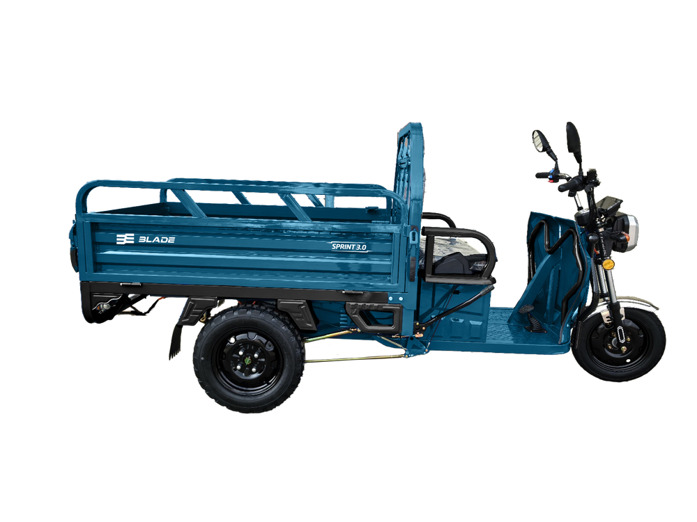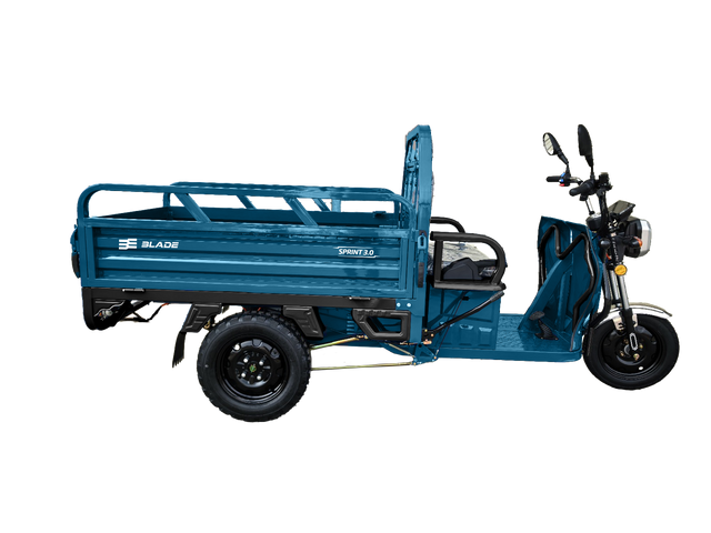 Triciclu Cargo electric BLADE Sprint 3.0 - 2000W, 25 km/h, autonomie pana la 70 km, baterie plumb-acid 72V 45Ah, capacitate maxima 600 kg, fara permis, culoare albastru - Descriere produs
