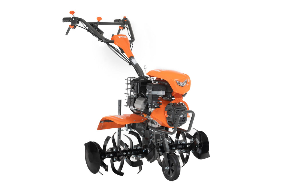 Daca pana acum aratul insemna efort sustinut si oboseala, motocultorul de la O'MAC alunga orice stres. Cum? Foarte simplu. Motorul de la Loncin, calitatea superioara a componentelor, transmisia pe pinioane intr-un invelis din fonta si cutia de viteze 3+1 viteze realizeaza o combinatie imbatabila. Te imprietenesti rapid cu acest utilaj, usor de manevrat, datorita manerelor ergonomice si rotilor care faciliteaza deplasarea pe orice tip de teren. Cele 104 kilograme il incadreaza in categoria motocultoarelor stabile, lucru de care te poti convinge de la prima utilizare.