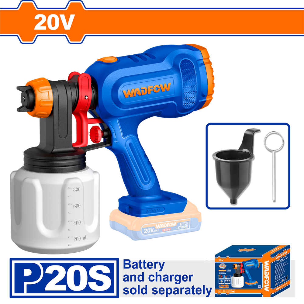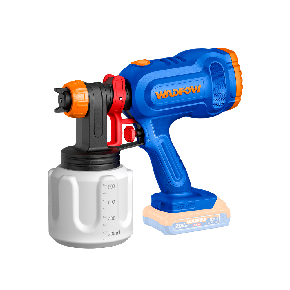 Pistol de vopsit WADFOW 20V – debit 650ml/min, rezervor 800ml, accesorii incluse (fara acumulator si incarcator)