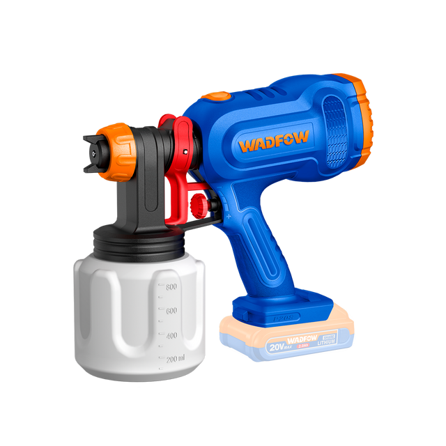 Pistol de vopsit WADFOW 20V – debit 650ml/min, rezervor 800ml, accesorii incluse (fara acumulator si incarcator) - Descriere produs
