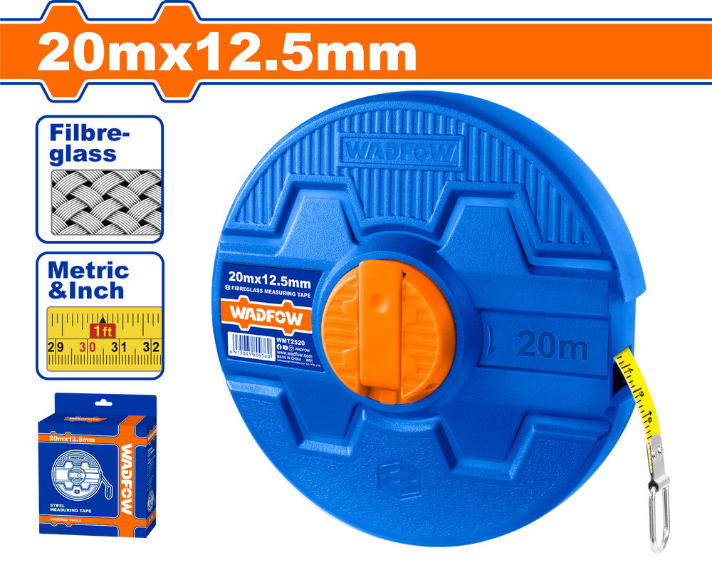 Ruleta Wadfow, fibra de sticla, lungime 20m, latime 12.5mm