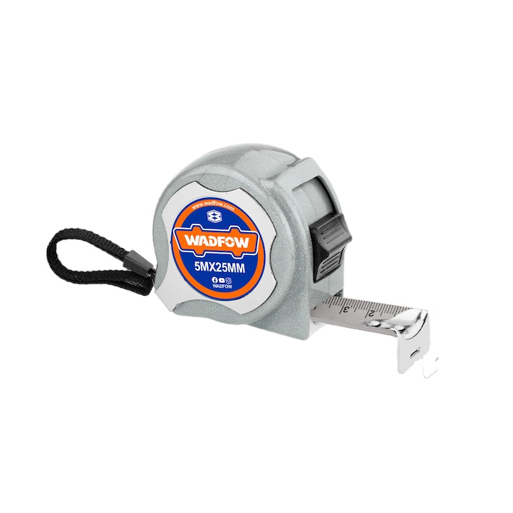 Ruleta Wadfow, 5m lungime, latime banda 25mm, gri - Descriere produs