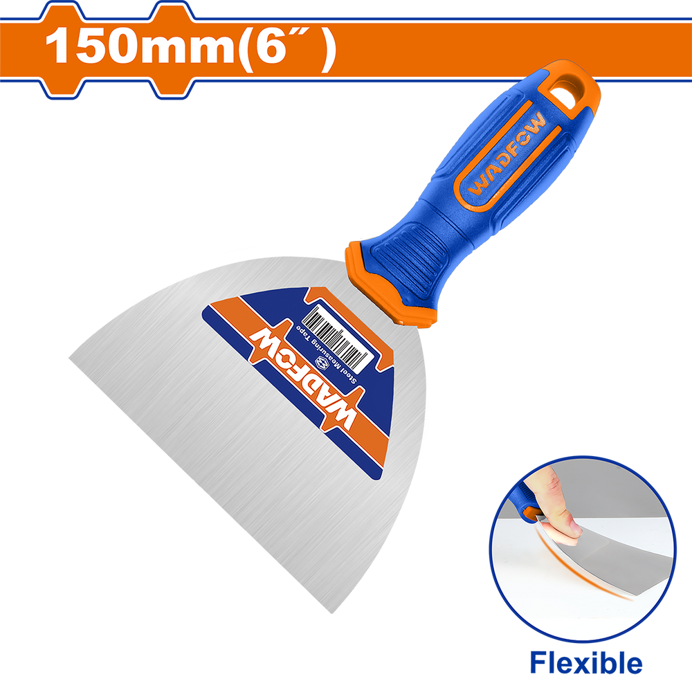 Spaclu metalic cu lama lata de 150 mm, tratata termic si cu finisaj lustruit pentru rezistenta si utilizare indelungata. Manerul din plastic dublu colorat ofera o prindere confortabila si sigura, fiind ideal pentru lucrari de finisare, nivelare si intindere a materialelor.